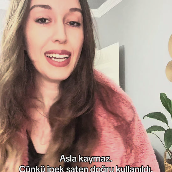İçi tamamen %100 doğal ipek astarla kaplı — saçına ipeksi bir dokunuş sunar, statik elektriği engeller ve her takışta yumuşacık bir his bırakır.